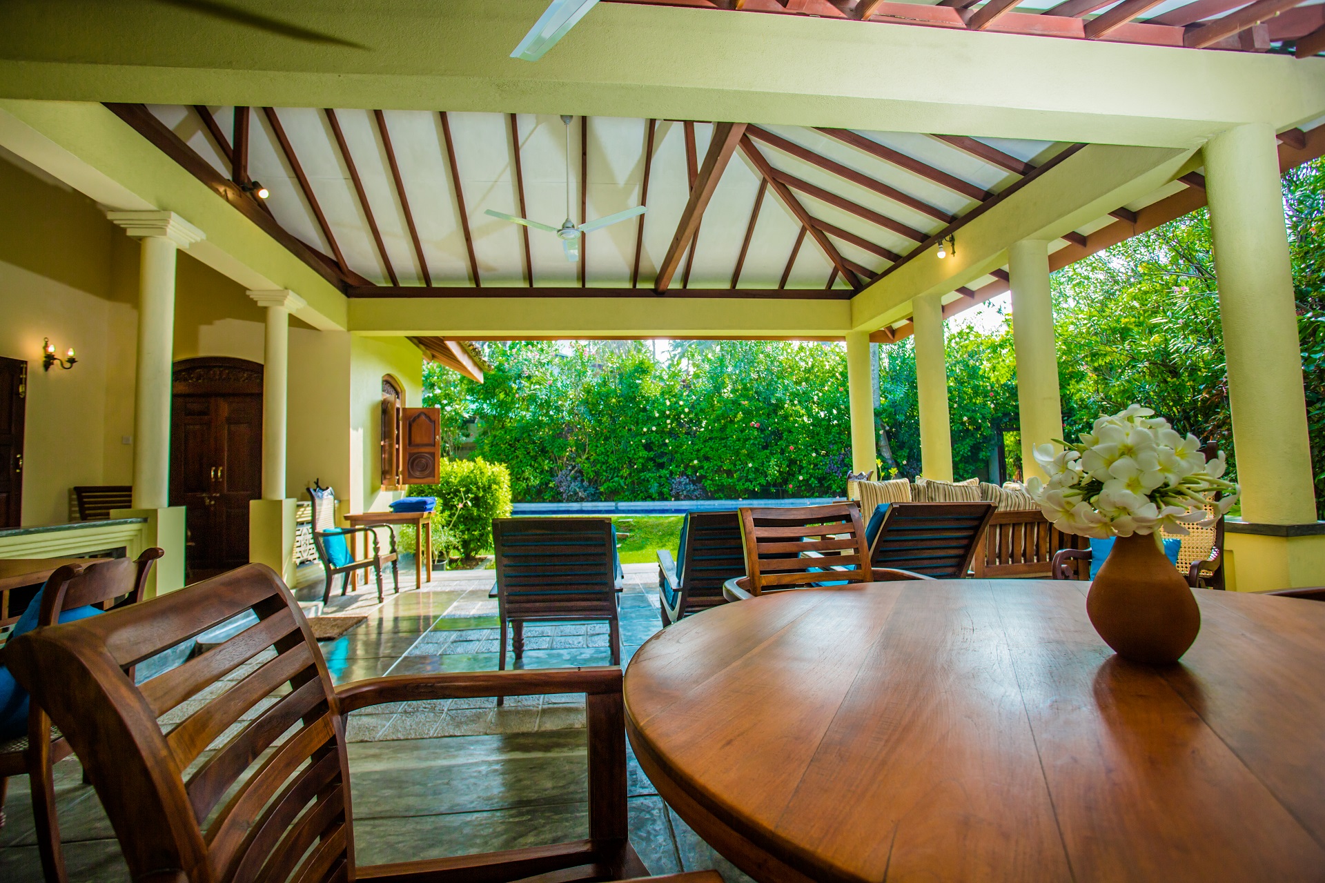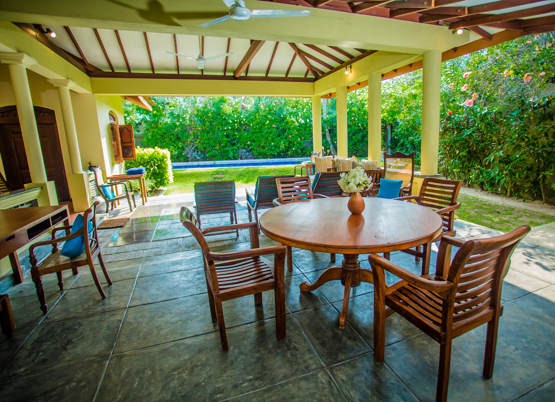 The Chalet offers luxury and personalized service. Sitting areas have Ceiling fans, comfortable sofas and chairs. A well equipped kitchen. The villa can be taken with or without staff