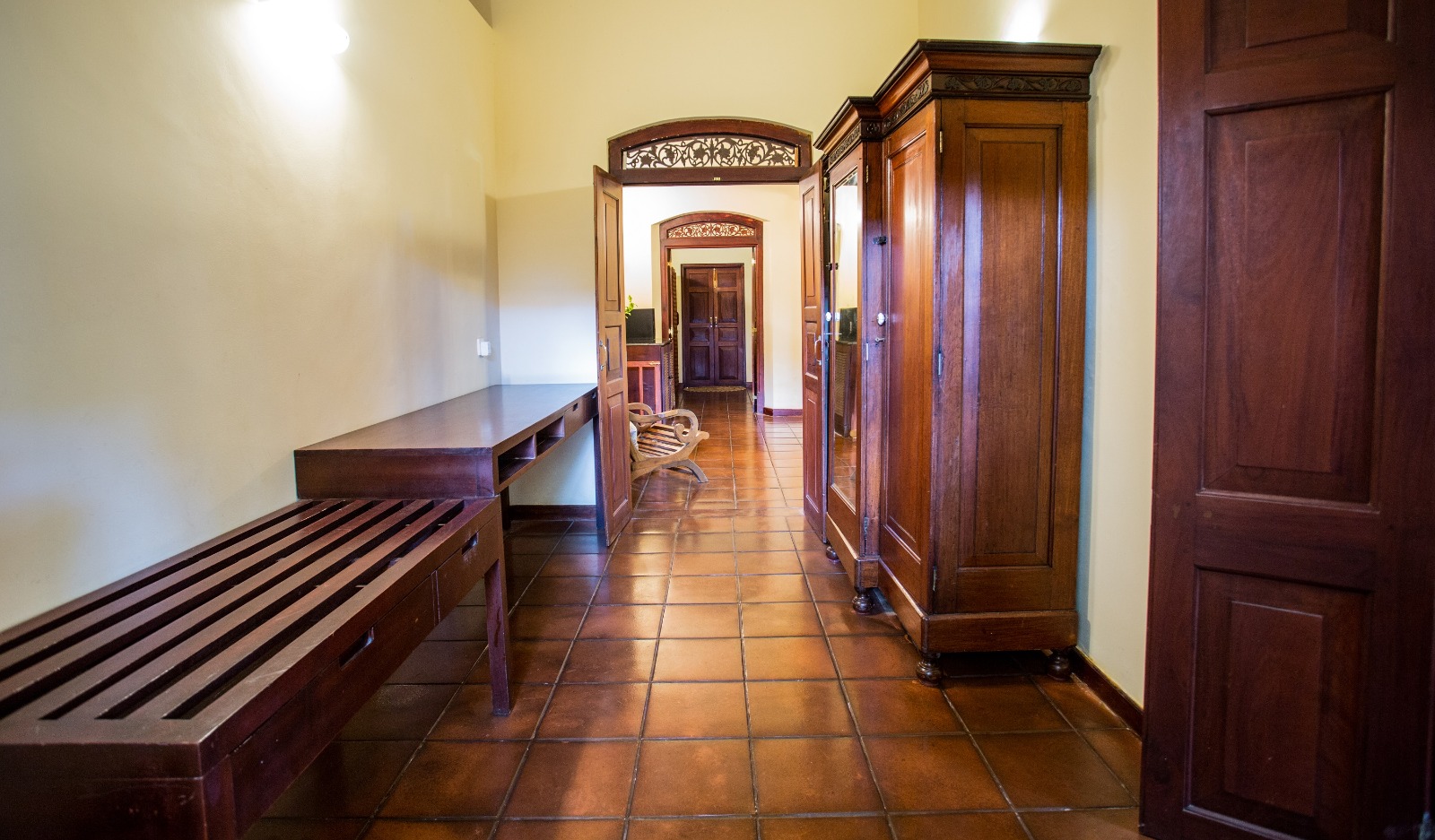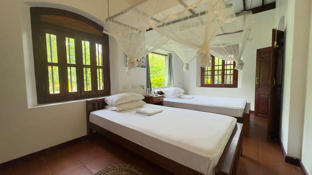 The Chalet features two air-conditioned bedrooms with ensuite bathrooms and attached dressing rooms. Designed for comfort and convenience, the villa accommodates up to six guests ( two extra single beds can be provided). Tiled floors, ceiling fans, wardrobes, safety boxes, and a master bedroom refrigerator.